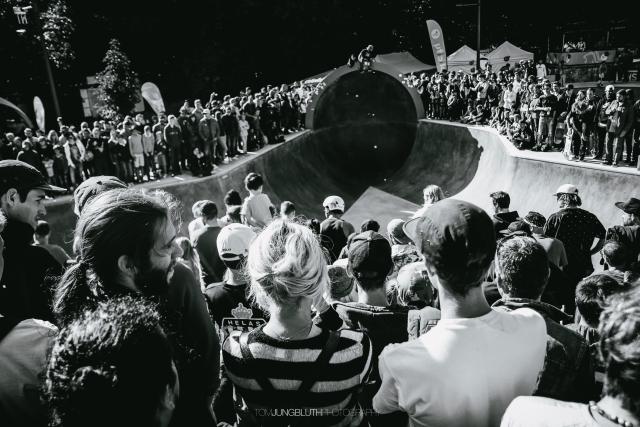 The skill level was impressive and the motivation was high throughout the event. Saturday night saw a lot of people coming to support and encourage the bands and having a good time despite the heavy rain. On Sunday the sky opened up and the sun shone on the skatepark for everyone’s pleasure. The Finals took place in front of large audience.